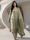 Shirt This outfit is an elegant, monochromatic three-piece ensemble in a soft ivory shade. It blends traditional contemporary silhouette, characterized by intricate tonal embroidery.